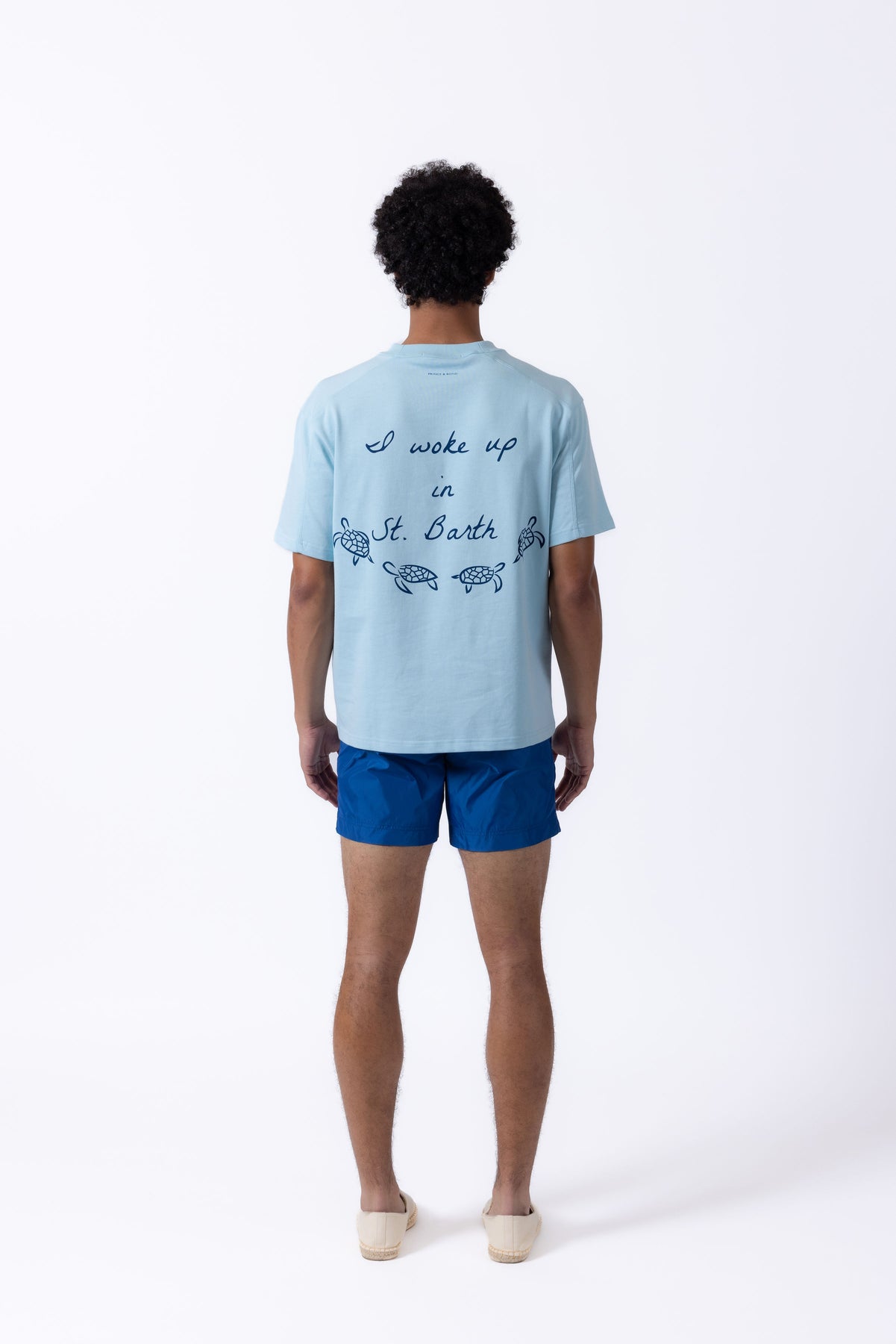 The 'I woke up in St Barth" T-shirt reimagines the classic souvenir tee through the lens of refined resort wear, cut from premium heavyweight cotton, chosen for it's soft hand-feel and breathability, it features a hand drawn script and artistic turtle motif that is reminiscent of the ones found on the island.