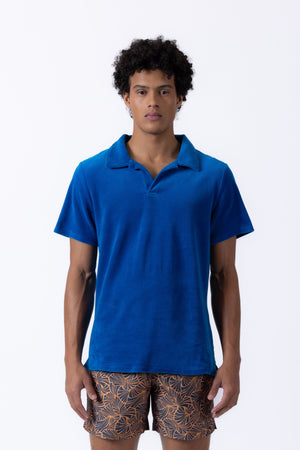 Crafted from ultra-soft terry cloth with a velour-like finish, the Riviera polo brings structure and sophistication to resort wear. It's tailored fit and plush texture make it the perfect blend of relaxed ease and elevated style. Pair with matching Rivera terry shorts to complete the look.