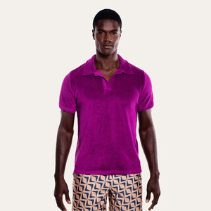 Cut from ultra-soft , breathable terry cloth and finished with an open placket, this polo brings a subtle touch of 60's Riviera glamour to your wardrobe . It's the piece you'll throw on after a swim, for a seaside lunch, or to elevate an easy summer evening look. Sustainably and ethically crafted in Portugal.