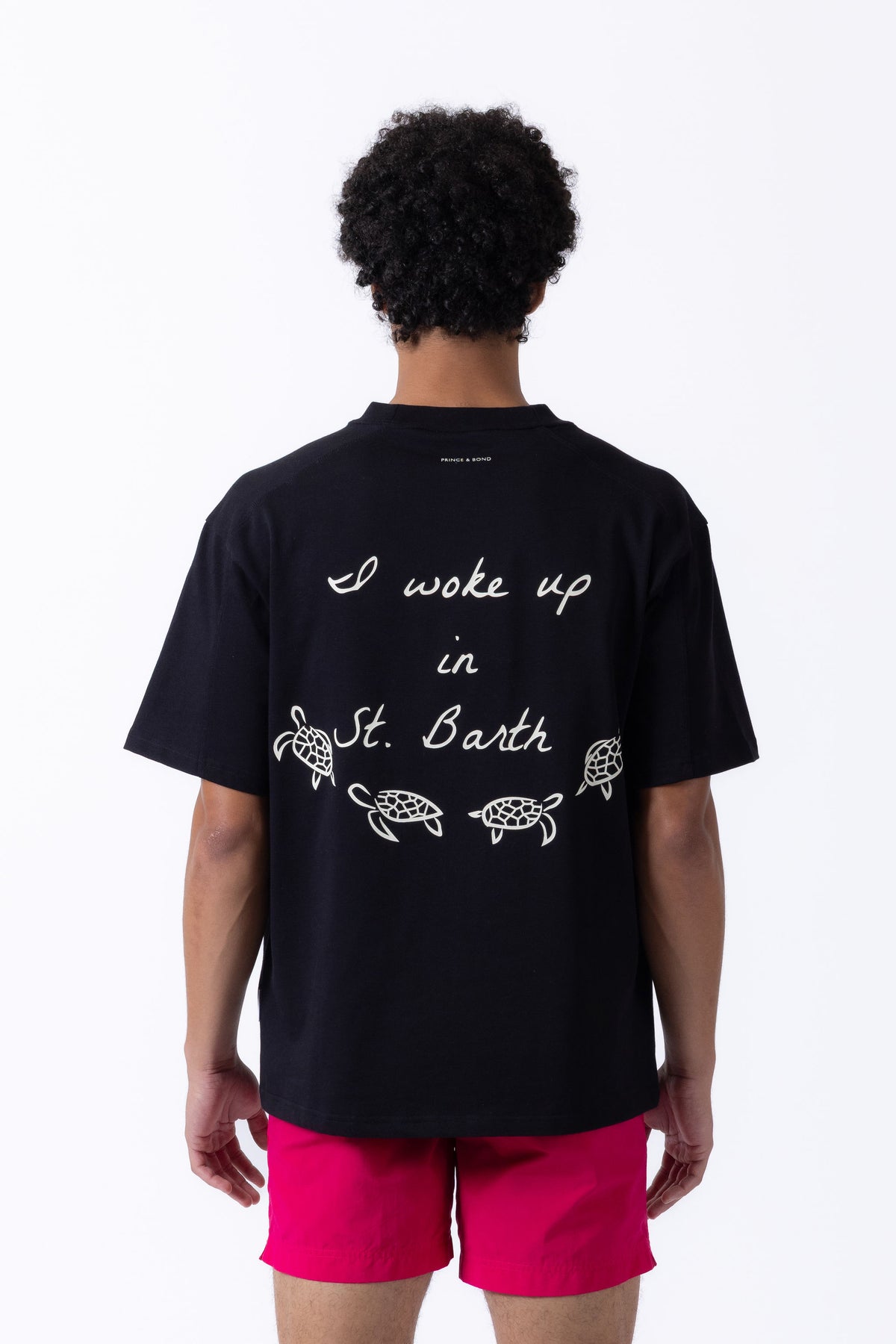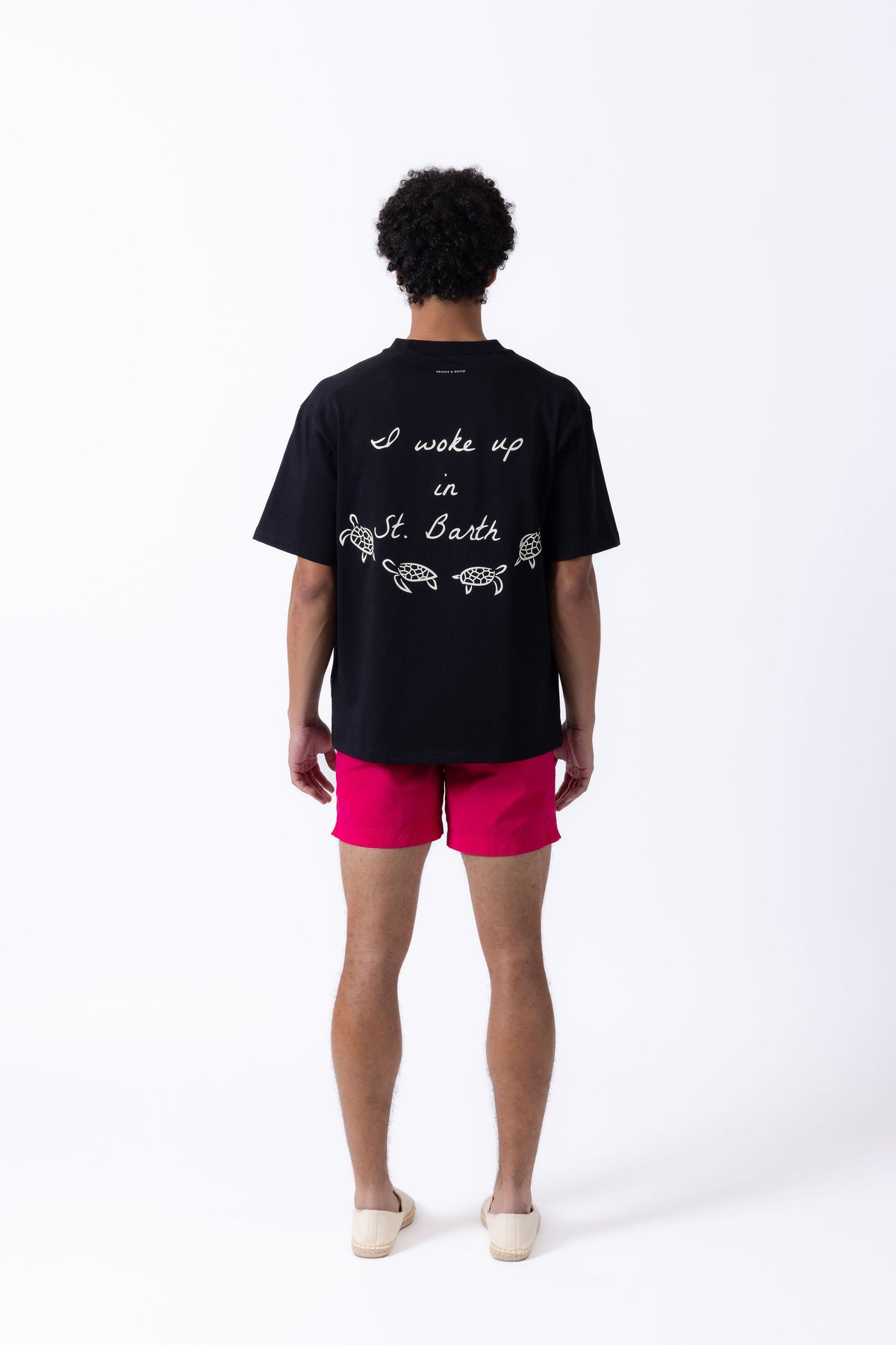 The 'I woke up in St Barth" T-shirt reimagines the classic souvenir tee through the lens of refined resort wear, cut from premium heavyweight cotton chosen for it's soft hand-feel and breathability, it features a hand drawn script and artistic turtle motif that is reminiscent of the ones found on the island.