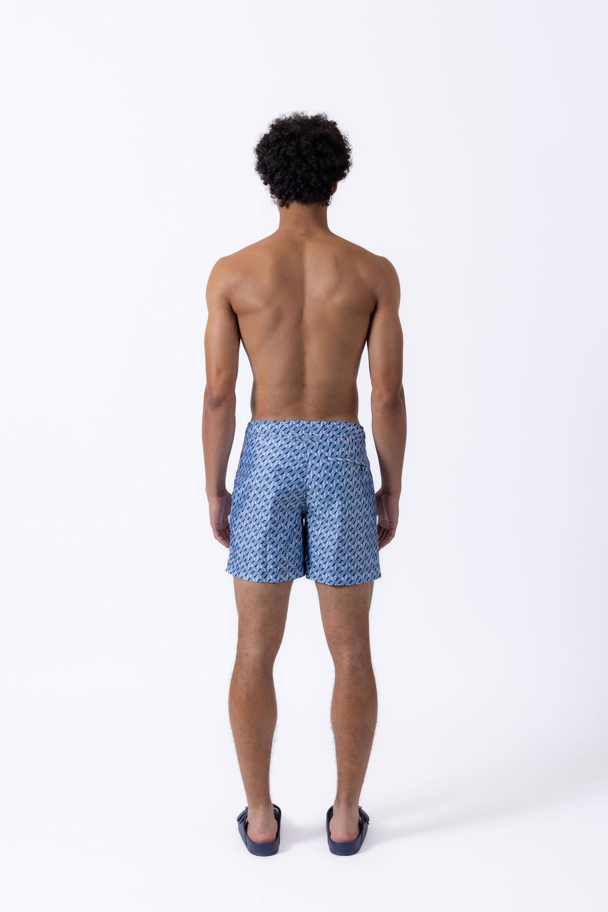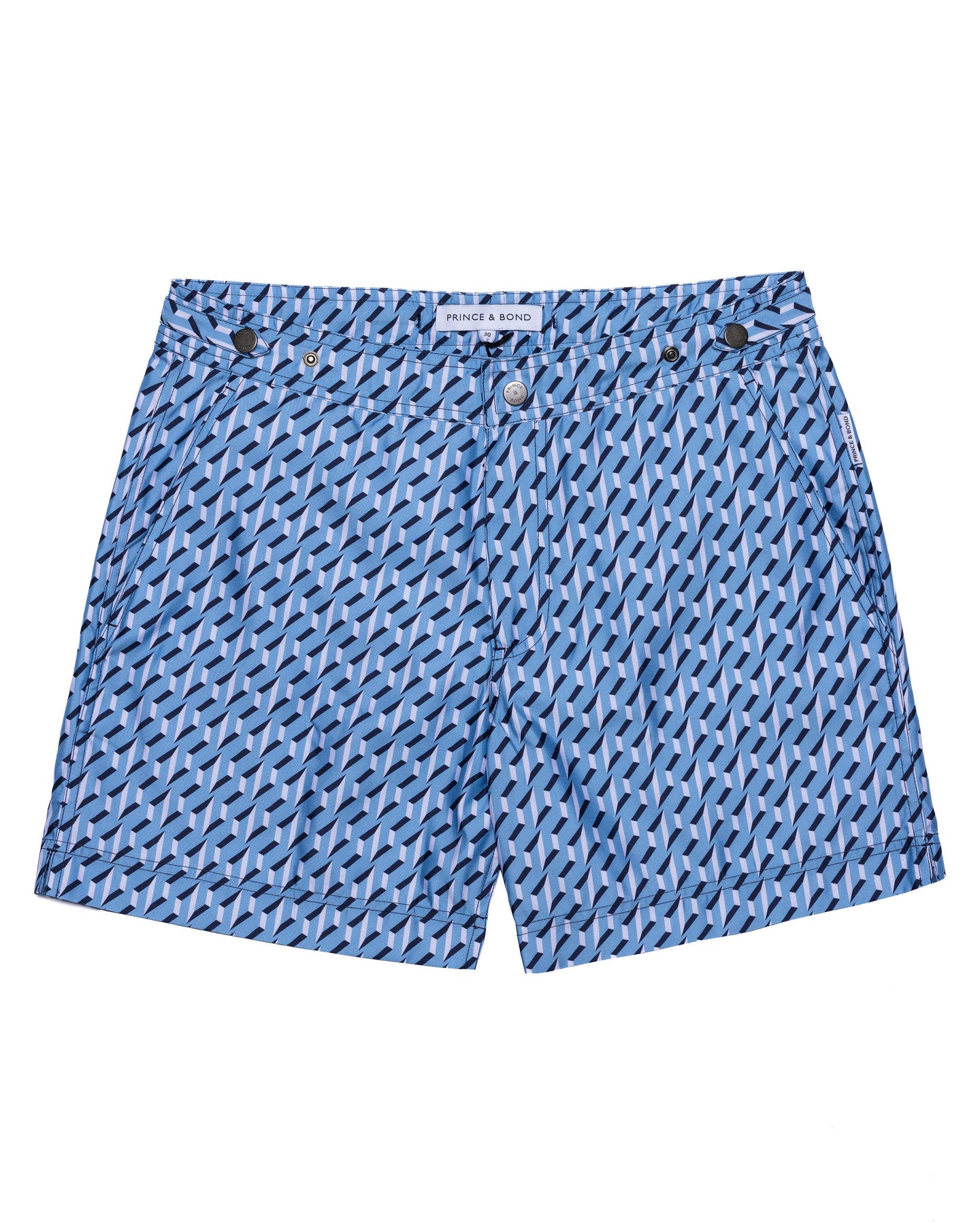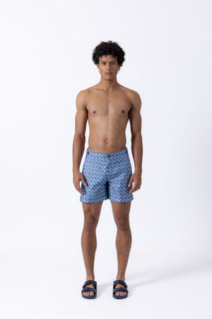 Cut in our signature Elvio silhouette, our hybrid tailored swim shorts are made from quick drying and breathable shell and printed in a blue geometric pattern.